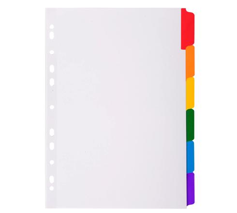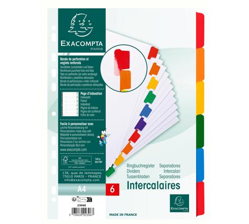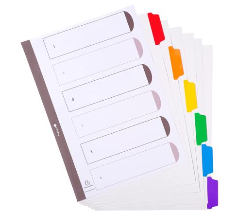 INTERCALAIRES CARTE BLANCHE 160G AVEC ONGLETS COULEURS RENFORCÉS - 6 POSITIONS - A4 - BLANC