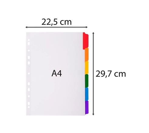 INTERCALAIRES CARTE BLANCHE 160G AVEC ONGLETS COULEURS RENFORCÉS - 6 POSITIONS - A4 - BLANC