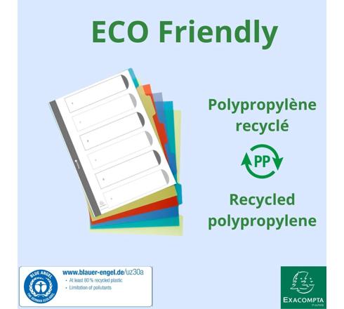 INTERCALAIRES POPLYPROPYLÈNE RECYCLÉ FOREVER® 6 POSITIONS - A4 - COULEURS ASSORTIES
