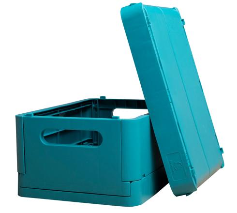 Environmentally friendly, this foldable box is made from recycled plastic from household waste and is therefore GRS certified.