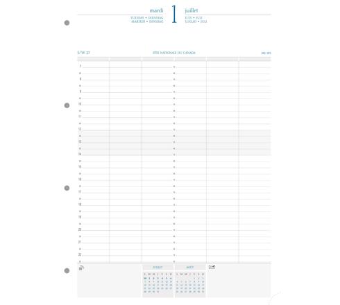 1 jour à la page - Rendez-vous 1/4h par 1/4h de 7h à 23h.