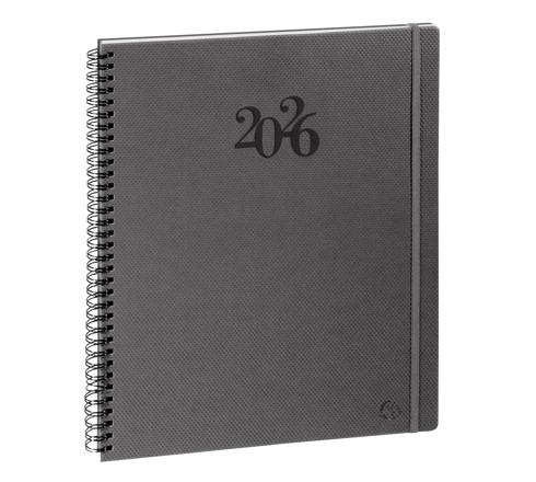 Une version souple de l'agenda décliné dans une matière douce façon textile. La semaine sur 2 pages à la verticale, 7 jours complets, large amplitude horaire avec RDV par 1/2h de 7h à 21h, édition multilingue. Couverture en synthétique, grain textile, spirale métal extérieure. Fermeture avec un élastique assorti. Marquage du millésime à chaud.