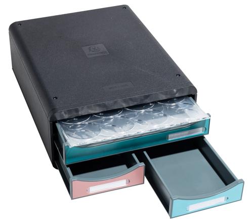 At just 13.5 cm tall, the 3-drawer module doubles as a screen riser. Its generous depth even allows you to place a coffee machine on top.