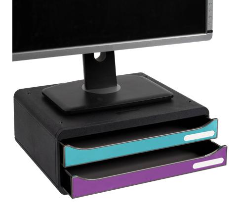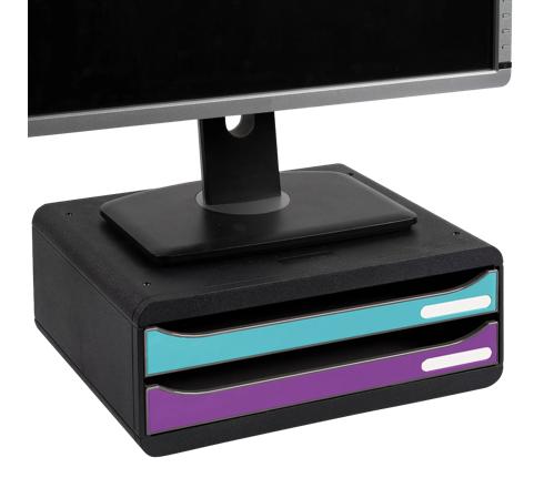 The Exacompta Tool-Box Titane filing module is a versatile storage solution designed for modern workspaces. With its low profile at 13.5cm, it can double as a monitor riser, creating a more ergonomic desk setup. Its two spacious drawers offer ample room for organising A4+ documents, elasticated folders, accessories, pens, and loose notes. A practical, multi-purpose module that keeps any workspace tidy and efficient.