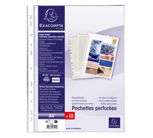 ÉTUI CARTON DE 100 POCHETTES PERFORÉES - PVC LISSE - A4 - CRISTAL
