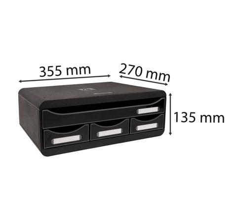 Product height is short (13,5cm) in order to let it being used as screen, printer or desktop sorter support.