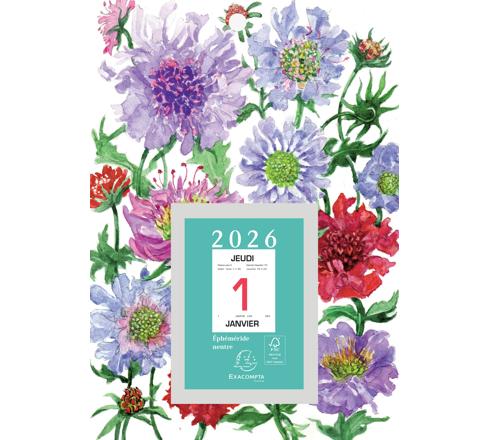 BLOC ÉPHÉMÉRIDE NEUTRE FLEURS (6,5 X 9,7 CM) SUR PLAQUE IMPRIMÉE 18 X 26 CM 2026 - VISUELS ASSORTIS