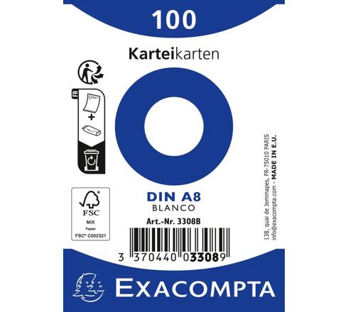 Exacompta Record Cards A8, Plain Made from Clairefontaine paper which is compatible for ink jet and laser printing and photocopying. 55x74mm Plain 205gsm White, 100 Cards shrink-wrapped