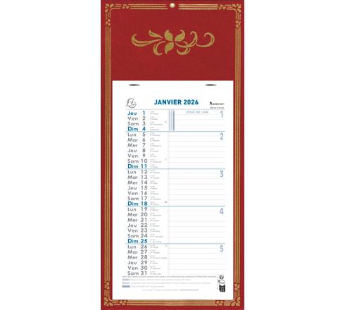 12 feuillets mensuels détachables, avec l'indication des vacances scolaires, les dimanches et les jours fériés sont imprimés en bleu pour les repérer facilement, de la place pour écrire sur chaque jour.