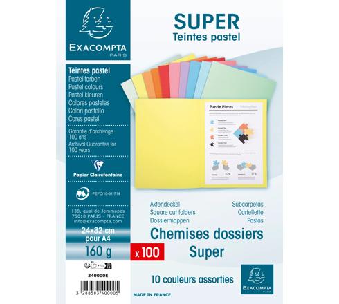 PK 100 FOLDERS SUPER 160 SALMON - ASSORTED COLOURS
