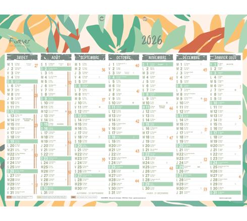 CALENDRIER FOREVER RECYCLÉ 43 X 33,5 CM SEMESTRIEL 2026