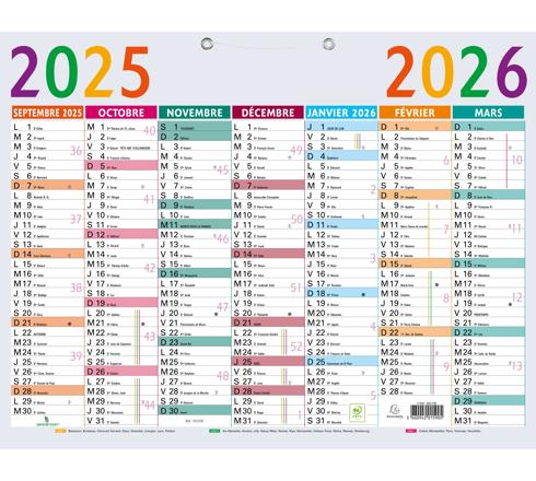 CALENDRIER MULTICOLORE 43 X 33,5 CM SEPTEMBRE 2024 À SEPTEMBRE 2025 - MULTICOLORE
