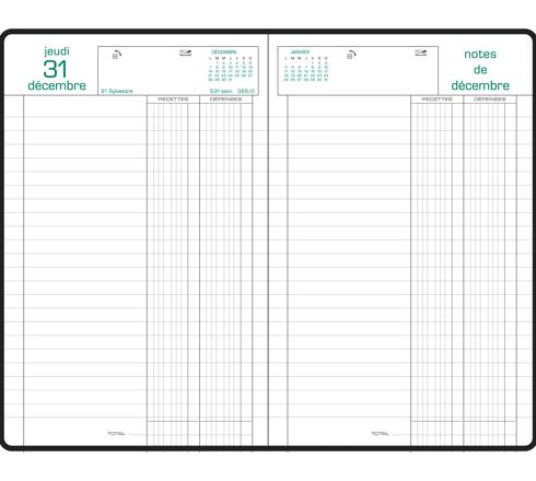 AGENDA DE BUREAU CARRÉ RECETTES ET DÉPENSES 13,5 X 21 CM JOURNALIER JANVIER À DÉCEMBRE 2026 - COULEURS ASSORTIES