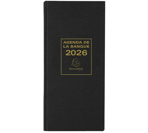 AGENDA DE BUREAU BANQUIER LONG EURO ET CENTS 16 X 34 CM JOURNALIER 2026 - NOIR