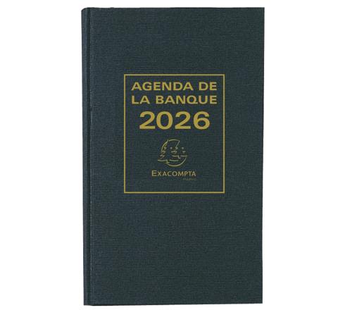 AGENDA DE BUREAU BANQUIER LARGE EURO ET CENTS 17,5 X 28 CM JOURNALIER 2 VOLUMES 2026 - NOIR
