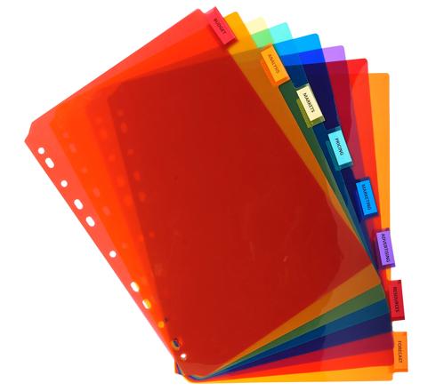 DIVIDER TRANSLUCENT PP A4 8P COLOURED - ASSORTED COLOURS