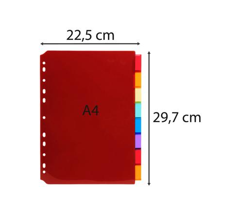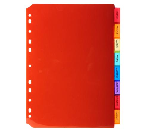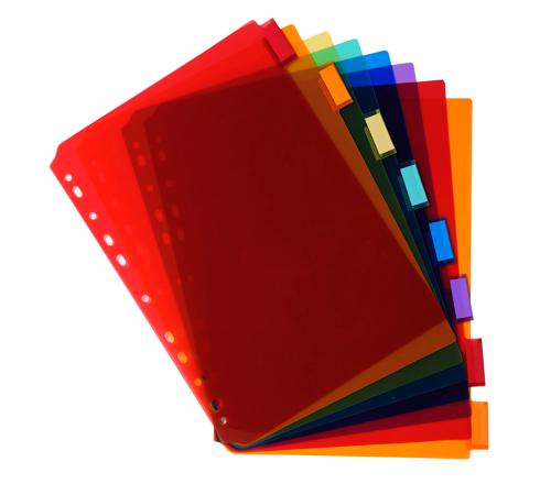 DIVIDER TRANSLUCENT PP A4 8P COLOURED - ASSORTED COLOURS