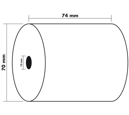 74mm width and 70mm diameter calculator paper rolls designed for use with all brands of printing calculators that use an ink roll or ribbon, Each roll is 40m in length (+ or - 2m) for less roll changes.
