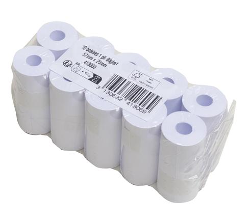 Pack of 10 rolls with an extra white finish ideal for receipt books in small businesses such as shops or accountants and at home, The packaging protects the rolls from water and humidity to keep them in perfect condition when in storage.