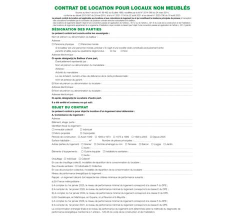 Feuille Contrat de location pour locaux non meublés telles qu'utilisées dans les dossiers réf. 44E et 41E.