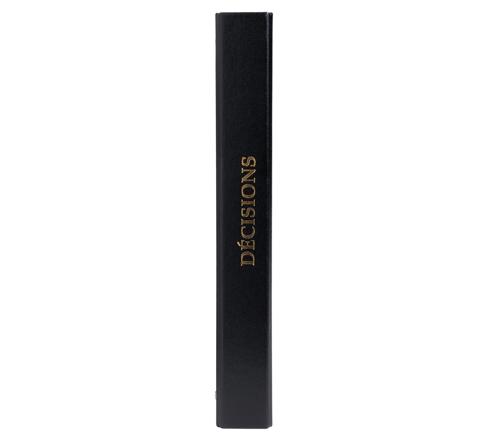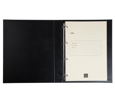 La reliure Exacompta est composée d'un classeur rembordé plastique, 4 anneaux en D en 3ème de couverture (ouverture simultanée des 4 anneaux), titre imprimé en doré sur la couverture et au dos du classeur. Elle est équipée d'une recharge de 100 feuilles vierges et foliotées, avec page de garde Décisions personnalisable + 2 encarts neutres.