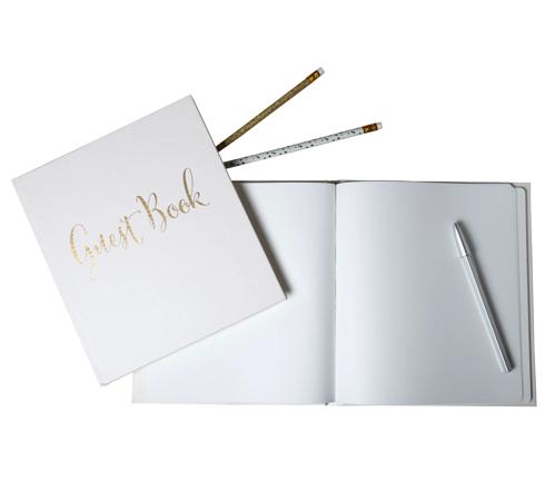 GUEST BOOK 140P GOLD 21X19 ENGLISH KRAFT - WHITE - NEW