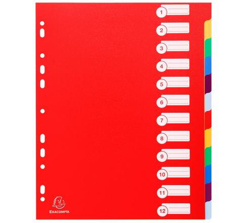 INTERCALAIRES POLYPROPYLÈNE OPAQUE SEMI RIGIDE 12 POSITIONS - A4 MAXI - COULEURS ASSORTIES