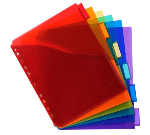 DIVIDERS PP A4+POCKET & LABEL TABS 6PT - ASSORTED COLOURS