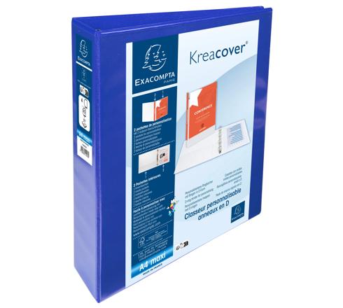 CLASSEUR PP PERSONNALISABLE KREACOVER - 4 ANNEAUX EN D 40MM - A4 MAXI - BLEU