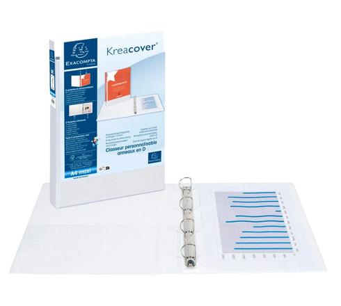 CLASSEUR PP PERSONNALISABLE KREACOVER - 4 ANNEAUX EN D 50MM - A4 MAXI - BLANC