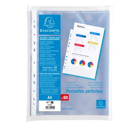 SACHET DE 50 POCHETTES PERFORÉES POLYPROPYLÈNE LISSE 6/100E - A4 - CRISTAL