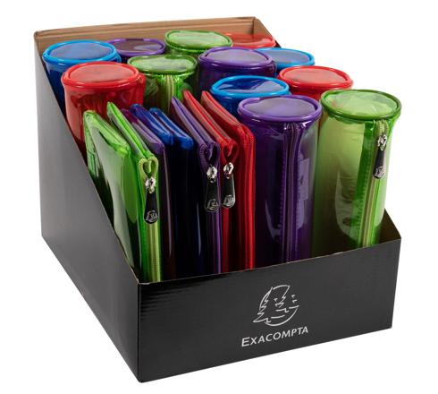 Exacompta Iderama PVC Pencil Cases A coloured and semi-transparent case to find everything faster! 2 shapes and 4 colours available under the same product code. Trade only: Supplied in a display of 20 assorted pencil cases.