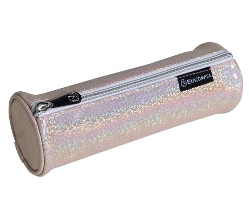Forme ronde, peu encombrante, grande capacité, adaptée au scolaire, la trousse Glitter peut accueillir une règle double décimètre et de nombreuses fournitures.