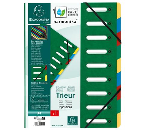 TRIEUR HARMONIKA® À FENÊTRES AVEC ÉLASTIQUES VÉRITABLE CARTE LUSTRÉE 9 COMPARTIMENTS - COULEURS ASSORTIES