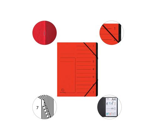 STAPLED MULTIPART FILE WITH BLACK ELASTIC, 7 COMPARTMENTS, A4 - RED