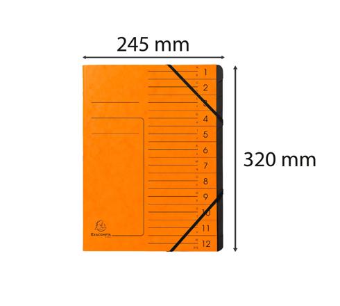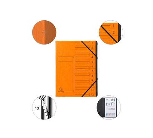 TRIEUR AGRAFÉ AVEC ÉLASTIQUES INTÉRIEUR NOIR 12 COMPARTIMENTS - A4 - ORANGE