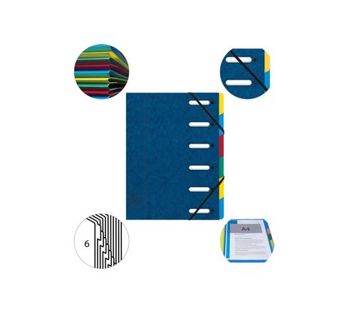 TRIEUR HARMONIKA® À FENÊTRES AVEC ÉLASTIQUES VÉRITABLE CARTE LUSTRÉE 6 COMPARTIMENTS - BLEU