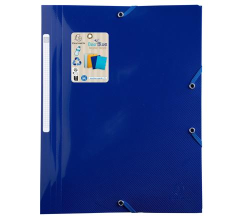 Bee Blue PP Elasticated 3 Flap Folder Ideal for boosting performance and enthusiasm, Bee Blue is an eco-friendly selection of Exacompta filing and desktop accessories. The range is created using Blue Angel certified recycled PP, which gives a second life to old materials and incorporates a choice of 4 vivid trendy colours saffron, navy blue, light blue and turquoise. Excellent document retention thanks to interior flaps and blue elastic bands. Convenient for transporting and storing your documents. 3 Flap folder with elasticated closures. Size 24 x 32cm for A4 sheets. Spine label to identify contents
