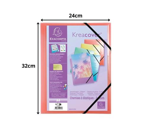 The KreaCover Pastel elasticated 3 flap folder has a pocket on the front cover to personalise in A4 size. Easy to create, you will find on the site www.exacompta.com the Kreaman tool which guides you to create your personalisation more easily.