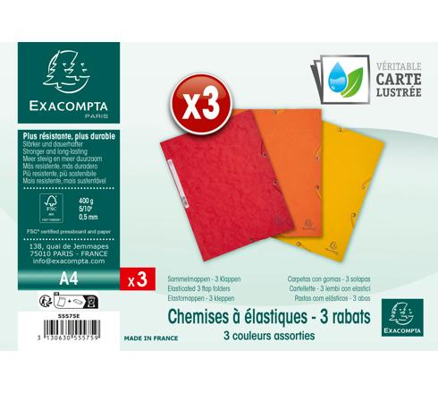 LOT DE 3 CHEMISES À ÉLASTIQUES 3 RABATS CARTE LUSTRÉE 400G/M2 - A4 - SOLEIL