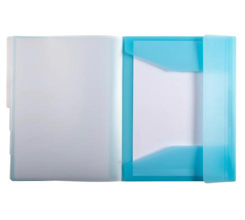 Multipart file with 3 flaps on the back cover for storing documents. Elasticated closure keeps contents secure.