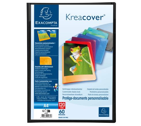 Kreacover PP Display Book, A4 Semi rigid opaque PP covers 0.5mm Pocket for personalisation on the front cover Crystal clear pockets for high transparency 24x32cm for A4 120 Views, 60 Pockets