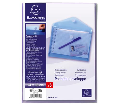 SACHET DE 5 MINI POCHETTES-ENVELOPPES POLYPROPYLÈNE - A5 - COULEURS ASSORTIES