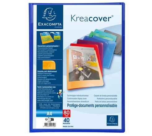 PROTÈGE-DOCUMENTS EN POLYPROPYLÈNE SEMI RIGIDE KREACOVER® OPAQUE 80 VUES - A4 - COULEURS ASSORTIES