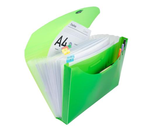Ce trieur est muni d'un compartiment frontal pour ranger une chemises à élastiques 24x32cm, des catalogues... en complément du classement de documents A4 dans les 13 compartiments.