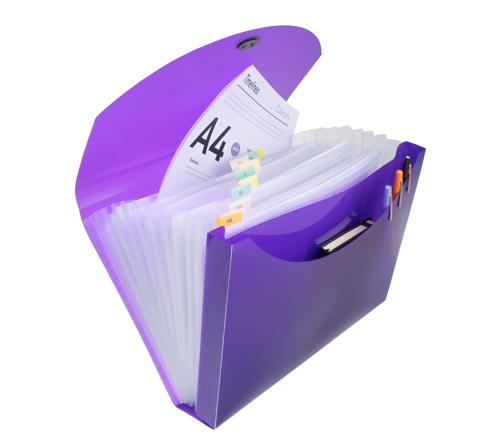 Ce trieur est muni d'un compartiment frontal pour ranger une chemises à élastiques 24x32cm, des catalogues... en complément du classement de documents A4 dans les 13 compartiments.