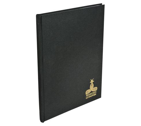 La couverture rigide est recouverte d'une toile noire pour une meilleure résistance et longévité.