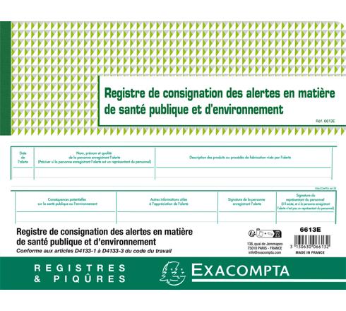 PIQÛRE 24X32CM - REGISTRE DE CONSIGNATION DES ALERTES EN MATIÈRE DE SANTÉ PUBLIQUE ET D'ENVIRONNEMENT - 20 PAGES
