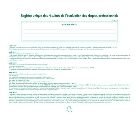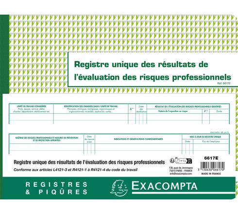 PIQÛRE 24X32CM - REGISTRE UNIQUE DES RÉSULTATS DE L'ÉVALUATION DES RISQUES PROFESSIONNELS - 60 PAGES