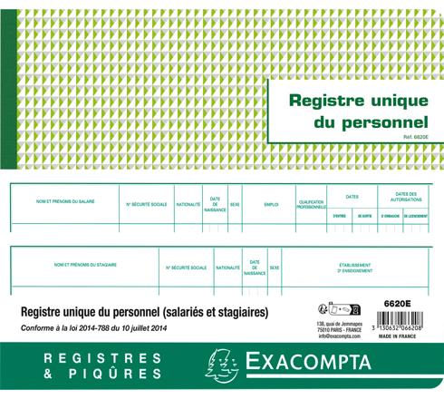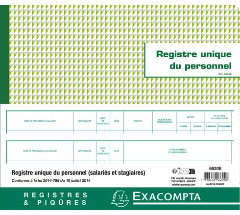 PIQÛRE 27X32CM - REGISTRE UNIQUE DU PERSONNEL (SALARIÉS ET STAGIAIRES) - 56 PAGES